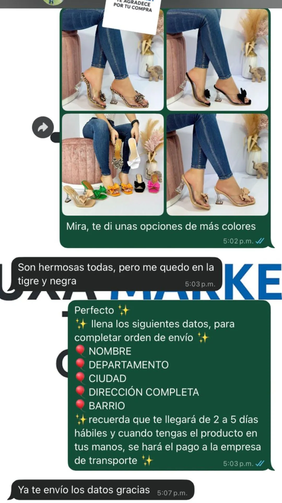 Contamos con pago contraentrega, para que pagues solo cuando recibas tus sandalias. También ofrecemos diferentes métodos de pago seguros en línea.